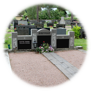 Hautakiven etupinta voidaan myös tarvittaessa hioa, jolloin kaikki kaiverrukset tehdään uudelleen. Kaiverrusten kokoa ja sijoittelua muuttamalla saadaan kiveen lisää tilaa tulevillekin kaiverruksille tai laatoille. Kullatuille ja hopeoiduille kaiverruksille myönnämme 10 vuoden takuun.